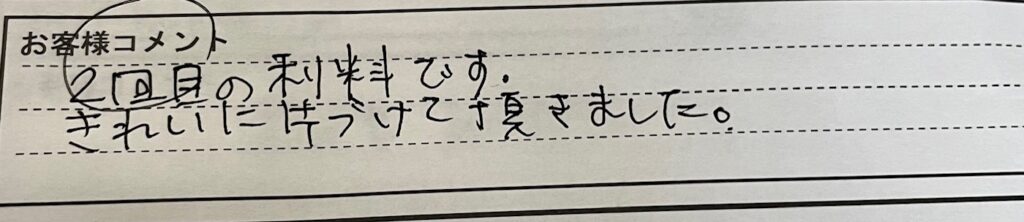お客様より今回のクリーンワークスのお仕事ぶり、
