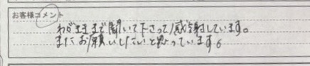お客様から感謝のお言葉を頂きましたので、