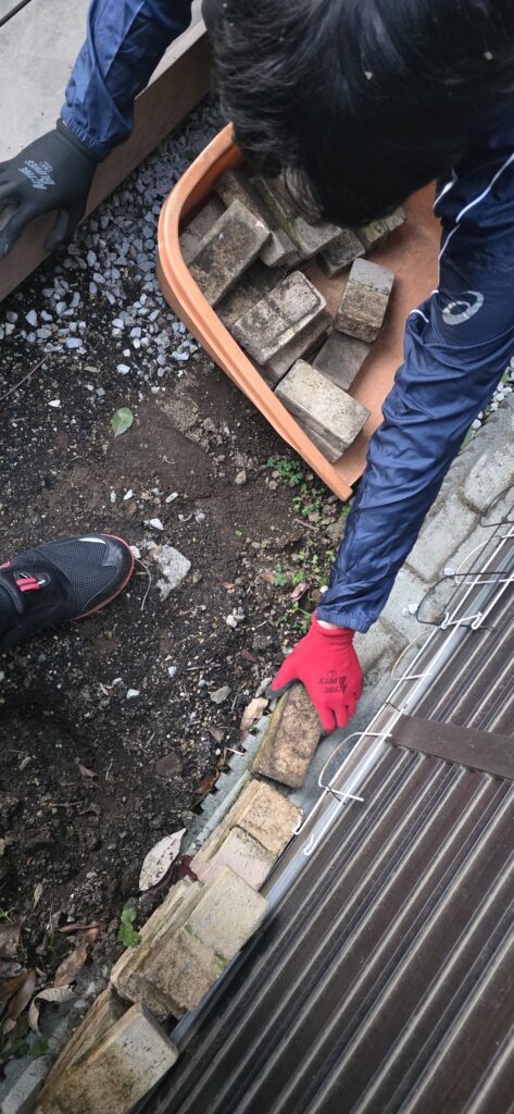 その流れで、フェンス沿いに残っていたレンガ類も追加でまとめてご依頼いただきました⊂(・﹏・⊂)