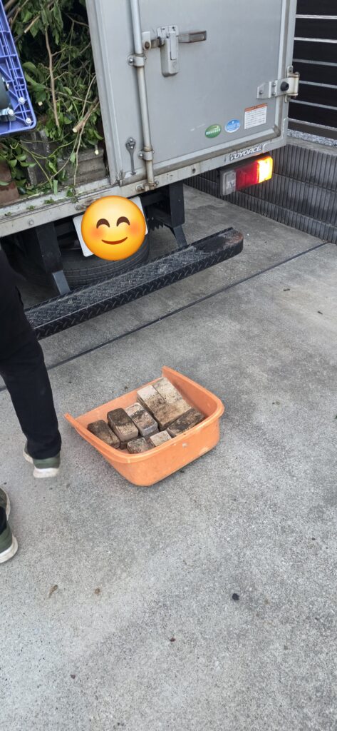 さらに土や石は少量ずつ「燃えないごみ」へ、レンガや敷石、コンクリートブロック類も大きさや量によっては燃えないごみ・粗大ごみの対象になるため、太い幹や土付きの根、重たいレンガが大量に出たお庭の片付けは、自力では一気に進めにくいのが現実です☠️😣
