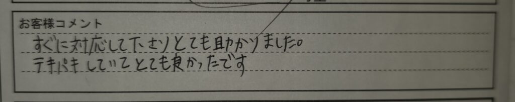 「すぐに対応して下さりとても助かりました。テキパキしていてとても良かったです」