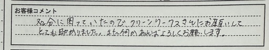作業後、お客様から大変ありがたい