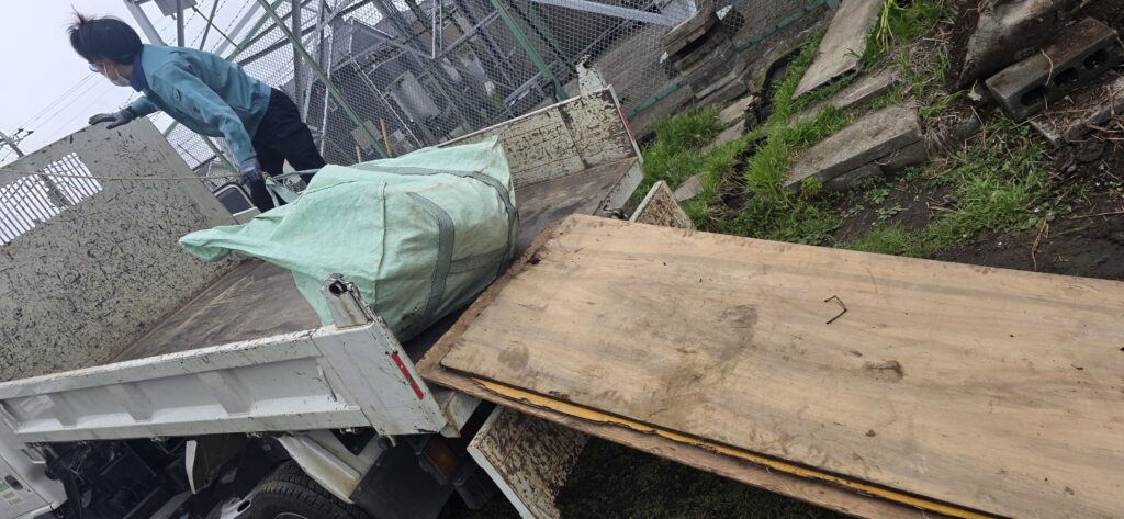 | 担当スタッフの感想 | ●🌱今回の作業内容🌱● それでは今回の作業詳細ですっ🛠️🌱 ・横浜市泉区にて、推定500キロ超〜600キロクラスの庭石・天然石を土から掘り起こしと積み込み回収😤 ・周囲に埋まっていた大量のコンクリート片・ブロック類も掘り出し回収✨ ・スタッフ4名対応、作業時間は約3時間⏰ まずは巨大石の周囲を丁寧に掘り、石の全体が動かせる状態になるまで慎重に土を外していきます💪その後、人力では持ち上がらない重量だったため、4人がかりで何とか特大サイズのフレコンパックへ石を入れ込み、そこからが本番でした😈 箱車トラックのフロントフックにロープを結び、木のアオリ板を4枚重ねて滑り台状の搬出路を作成し、さらにダンプの荷台を少し傾けて滑りやすく調整🚚 そしてバックでロープを引きながら、3人が石の向きと落下防止をコントロールし、見事に巨大石をダンプへ積み込み完了っっ!!\(^o^)/🎊 その後は広い敷地内に点在していたコンクリート類をひたすら掘り起こし、かき集め、順次搬出していく流れで進行いたしました🌟 建設系廃棄物は、委託時に処理業者の適正な収集運搬・処分方法を選ぶことが重要と横浜市も案内しており、こうした重量物こそ安全管理と適正処理の両立が大切です✨ プロスタッフ4名で連携し、3時間ほどで全工程をきっちり完了でき、お客様にも大変お喜びいただけました😍 横浜市で庭石回収・天然石処分・コンクリート撤去・埋設物の掘り起こし・即日不用品回収をご検討中のお客様、このような難しい現場こそクリーンワークスにお任せくださいませ!! お客様、この度は数ある業者の中から当社をお選びいただき、本当にありがとうございましたっっ🌷 また機会がございましたら、ぜひよろしくお願いいたします!ʕっ•ᴥ•ʔっ✨ |
